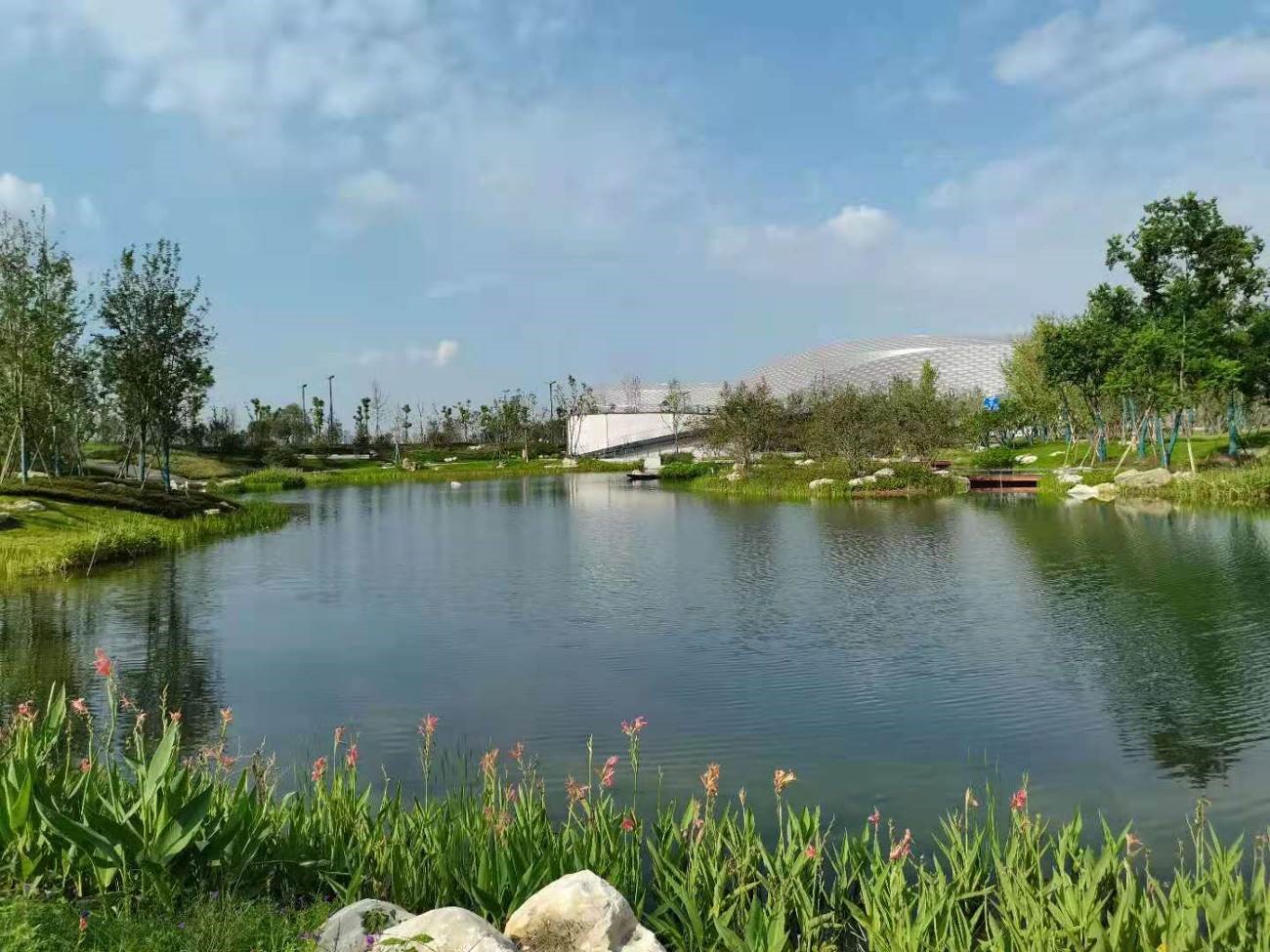 長(zhǎng)隆集團(tuán)總部大樓外部景觀以嶺南園林為原型,嵌入長(zhǎng)隆文化元素, 打造具有嶺南特色的現(xiàn)代企業(yè)文化園林景觀體系。景觀設(shè)計(jì)著力解決建筑、自然、人以及動(dòng)物之間的和諧相處。 將“網(wǎng)紅標(biāo)志景觀”、現(xiàn)代生態(tài)景觀、嶺南精品園、半室內(nèi)山水、動(dòng)物自然棲息地以及員工休閑地集合與空間之中,打造生態(tài)立體辦公超級(jí)綜合體。